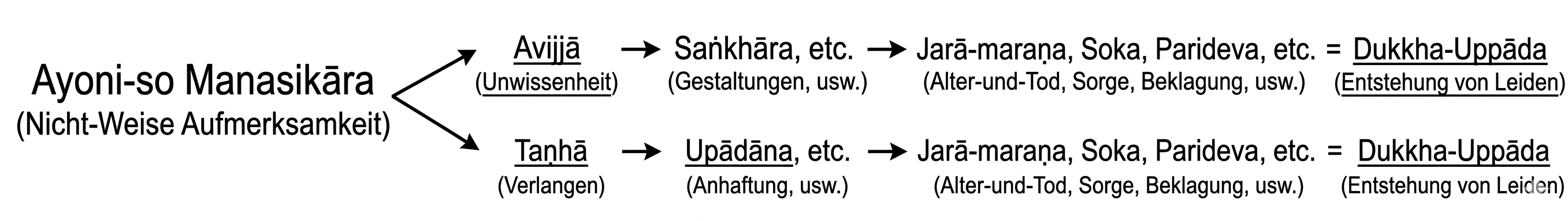 Das bedingte Entstehen (paṭiccasamuppāda), beginnend mit Nichtwissen (avijjā), als Ursache des Leidens (dukkhasamudaya), z. B. A.Tik.20/501/227 sowie alle Buddhawort-Stellen zum bedingten Entstehen (paṭiccasamuppāda), die mit den Worten enden: evam etassa dukkhakkhandhassa samudayo hoti.↩︎